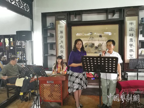 来参观可园,行至绿绮楼上偶尔靠窗俯视,只见小桥流水,曲径回廊,传统的粤曲腔调旋律回荡在这古典园林中……这一刻仿佛时光倒流,是多么富有诗情画意啊!若您兴致大发,即可与发烧友合唱粤曲或小调,或与莞城当地粤乐好手合奏广东音乐。发烧友们都热衷于传唱那些经典粤曲,他们觉得这些粤曲行腔悦耳、脍炙人口,同时也希望以悠扬粤韵给围观的游客带来听觉享受,使他们感受到我们广东粤曲腔调是那么动听,从而打开承传传统粤剧粤曲文化的一扇“粤韵之窗”。