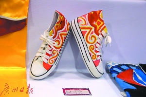 记者了解到,这次最触动阿雯的是梧州的一个初中生设计的“粤剧鞋”。鞋子是普通白色布料板鞋,但该学生创造性的,将粤剧化妆还有服装中经常出现的彩云图案,绘制到鞋子上,让一对白鞋,有了潮流青春的感觉。阿雯告诉记者,虽然这双鞋子,表面看还很粗糙,但却提供了一个全新的方向,粤剧是传统的东西,但里面也有着很多能让年轻人感到“潮”的图案和元素。