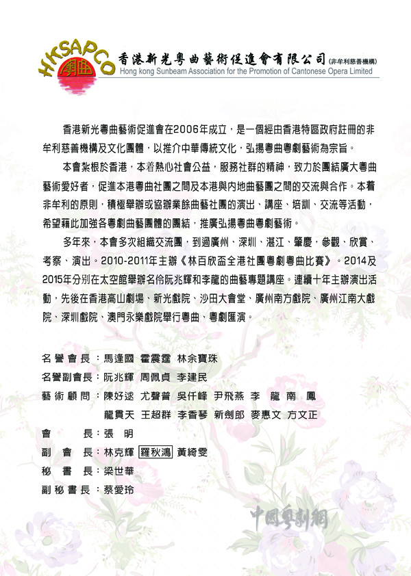 【粤剧节演出预告】6月13日香港新光粤曲艺术促进会、明辉文娱有限公司在南方剧院演出