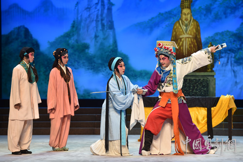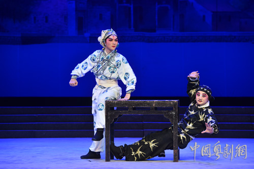 扮相俊俏的玉龙与90后演员马友民合演经典折子戏《韩琪杀庙》,玉龙剧中展示韩琪自刎时,旋转540度落地的高难度动作,赢得了观众热烈的掌声;马友民在生活中青春可爱、年纪轻轻却能驾驭沉稳端庄的青衣行当。