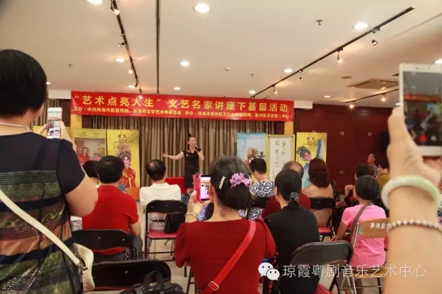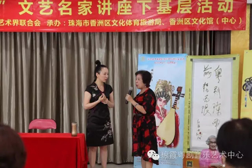 国家一级演员、中国戏剧“梅花奖”得主、红线女入室弟子、珠海市戏剧曲艺家协会主席、珠海粤剧团团长、珠海粤剧传承人琼霞老师为现场的粤剧爱好者带来了精彩纷呈的粤剧知识讲座,示范性讲解了红腔表演在气、声、字、情等方面的技巧和注意事项,还多次与听众进行互动指导。
