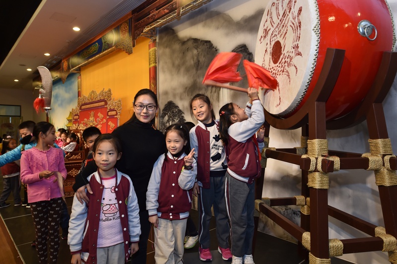 今日是2017年粤剧日,粤港澳三地都举行了规模不一的粤剧演出活动,首次开放的广东粤剧院“粤剧文化体验馆”也迎来了第一批客人,他们是来自广州市天河区五一小学的学生、老师和家长。下午一点,同学们在五一小学校长张智坤、副校长陈海亮和徐建瑞老师的带领下来到体验馆,一下子被吸引住了,体验馆既有舞台、开放式的化妆间,还有体验区和展览区,同学们兴致勃勃地在三个“微缩场景”上,或坐在花园的石凳上、皇宫的龙椅上拍照,或拿起刀枪剑戟玩耍过把瘾。