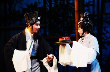 大型新编历史故事粤剧《东坡与朝云》昨天晚上在惠州市西湖大剧院隆重首演,广东省政协主席陈绍基,惠州市人大常委主任、市委书记黄业斌,惠州市市长李汝求等领导与1200多名观众一起出席观看了演出。据了解,为了让更多观众分享好戏,惠州电视台将当晚的演出实况作同步直播。