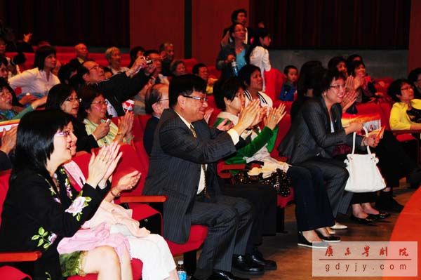 演出前,中国驻多伦多总领事朱桃英、加拿大安大略省公民及移民部部长陈国治、中华文化中心主席兼会长张明达。多伦多庆祝国庆60年筹委会主席伍卓生、丽晶集团主席罗志勤等到后台看望演员并合影留念。