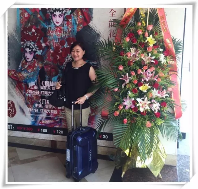 现场还有一位拉着行李箱站在演出海报前拍照留念的观众显得格外抢眼。原来这位观众是刚从法国回来的,才下飞机就拉着行李箱从机场飞奔到剧场看《八宝公主》!