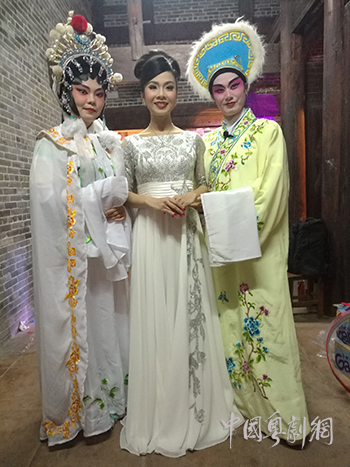 香港演艺青年粤剧团当家花旦林颖施(中),东莞麻涌红豆曲艺苑当家花旦莫敏儿(左);曾淑缓(右)