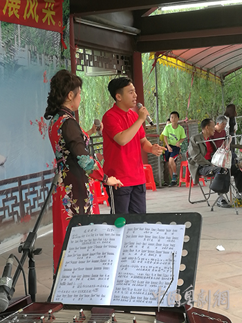 最年轻曲友庞林辉(右)