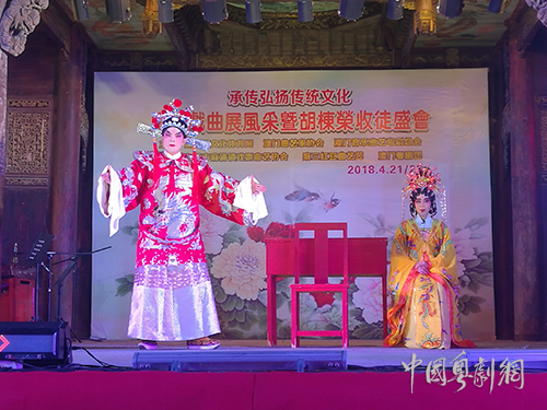 新会青年粤剧团石家俊(左),东莞花旦、青年粤剧教师唐沛雯(右)