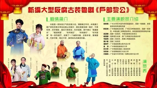 新编大型反腐古装粤剧《户部黎公》 由廉江市粤剧团(廉江市新自力粤剧有限公司)创作的新编大型反腐古装粤剧《户部黎公》已于9月4日、5日在廉江剧院上演。此外,该剧还将于9月7日,在湛江影剧院作为“2016湛江市戏剧嘉年华”闭幕式剧目展出。 剧目介绍