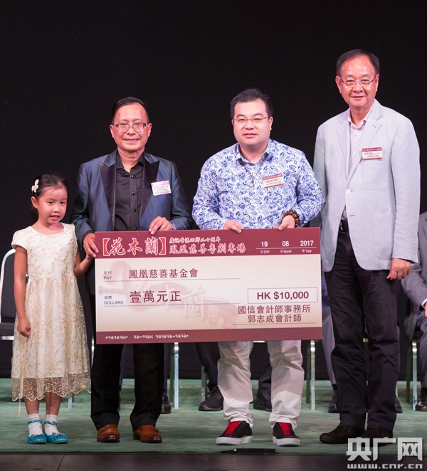 央广网香港8月20日消息(记者周伟琪)为庆祝香港回归祖国20周年,凤凰慈善基金会与凤翔鸿剧团携手呈献的新编大型舞台粤剧《花木兰》慈善专场,于8月19日在香港文化中心大剧院隆重上演。此次活动邀请多个基层家庭及长者一同观看,演出所得收益在扣除成本后,将全数拨捐凤凰慈善基金会用于社会慈善用途。