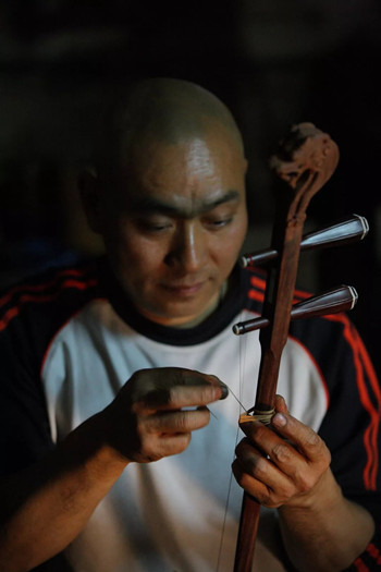 毛旺高胡制作工艺师(李庆华摄)
