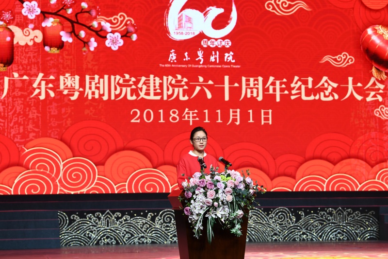 汪一洋厅长在纪念大会上致辞。他指出,广东粤剧院取得的成就,离不开一代又一代“粤剧院人”的拼搏奋进和薪火相传。回望过去的60年,广东粤剧院始终坚持“出人出戏出效益”的宗旨,坚持实干苦干、改革创新,用艰辛的汗水换来辉煌的收获,造就了马师曾、红线女、罗品超、罗家宝等几代粤剧名家及一大批优秀艺术人才,创作演出了包括《搜书院》《关汉卿》《山乡风云》《柳毅传书》《荆轲》《花蕊夫人》《伦文叙传奇》等粤剧经典名剧在内的600多个观众喜闻乐见的精品佳作,在广东粤剧艺术发展史上谱写了绚丽的篇章,成为名扬海内外的示范性、标志性地方戏曲艺术院团。希望广东粤剧院全体演职员工为建设文化强省、推动我省文化艺术走在全国前列作出新的更大贡献!