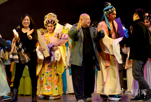 陈韵虹(左一)、孙业鸿(左三)祝贺演出成功