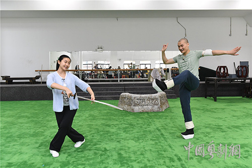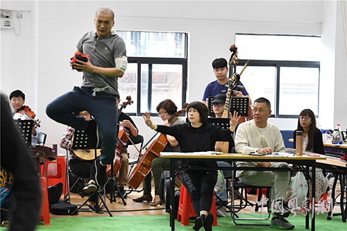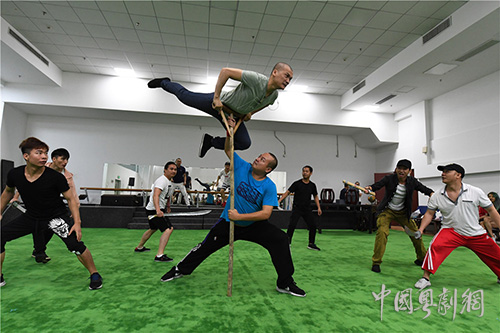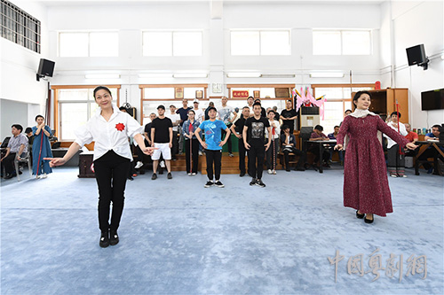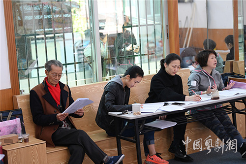 剧组艺术辅导老师叶兆柏、小神鹰、崔德坤指导演员排练