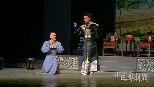 该戏共有四大篇章,并无具体场次区分。以粤剧传统板式【梆子首板】贯穿全剧的主题音乐,并以广东音乐《雨打芭蕉》作为副乐。甫一开场就有一股青春气息扑面而来,全剧的主演、配演几乎为剧院的80后、90后演员。说明了广东粤剧院领导以及艺术家们对青年梯队的培养力度之大,实属可贵。男、女主人公新华、翠屏分别由青年演员黄春强以及黄嘉裕饰演,新华一角更是以八和会馆的创始人之一,“小武王”邝新华作为原形创作。黄春强以小武见长,基本功扎实,规范,猴戏更尤为出色。近年来春强对文戏方面下了不少功夫,在《八和会馆》中他的唱功以及刻画人物相比以往大有进步,将剧中新华的戆直、忠厚、大义刻画得入木三分,如在念白上再下功夫,必是更上一层楼。黄嘉裕师承粤剧名家林小群老师,亦是中国戏曲学院毕业生,唱腔以及表演规范,中规中矩,尤其演绎翠屏一角时,利用了小旦的表演,尽显少女绣娘的天真纯情。青年演员吴泽东饰演的瑞麟张弛有度,眉目间得其师欧凯明之三昧。尤其他的清装身段甚是规范,捻朝珠上场下场的步伐近乎旗人官步,其张力可以说把这场戏的矛盾点推向极致。值得一提的是本剧中的男旦“勾鼻章”一角,是由顺德粤剧团的男旦黄新辉饰演,其亦生亦旦,子喉嗓音宽亮,加之粤剧男旦近几十年来几乎绝迹舞台,以其担任此角可谓当之无愧矣。