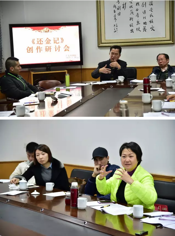 3月16日上午,粤剧《还金记》创作研讨会在广东粤剧院会议室举行,著名粤剧编导何笃忠、潘邦榛,省艺研所剧评家张晋琼,该剧编剧梁郁南、导演黄佳纳,广东粤剧院副院长麦玉清、陈列东,广东粤剧院艺术指导蒋文端、创作研究中心主任彭庆华以及本院创作人员出席了会议。在研讨会上,与会者对剧本初稿各抒己见,提出各自的意见和建议,为下一步的创作打下坚实的基础。