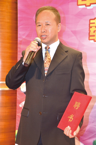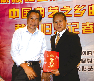 李时成向李汉铨颁发中国曲艺之乡建设委员会副秘书长聘书