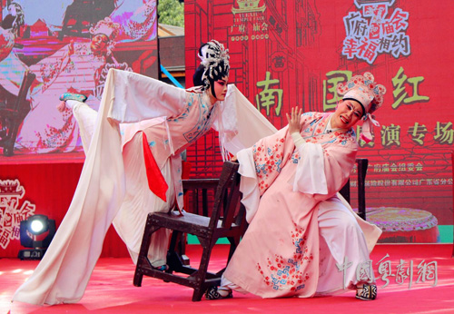 2月16日,广州红豆粤剧团表演的《“南国红豆”粤剧展演专场》,在广州城隍庙忠佑广场精彩上演。