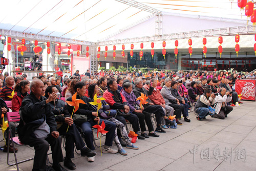 广州红豆粤剧团连续四年受邀参加广府庙会演出,深受广州街坊喜爱。16日上午,离开演尚早,观众们便早已整整齐齐入座等候。场外也被上百观众围得水泄不通,争相观看大团演出。