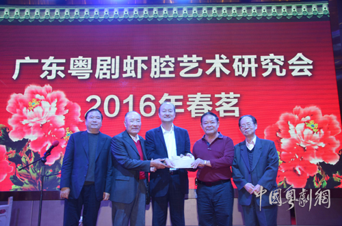 “虾腔”传妙韵,欢乐满华堂。一提到“虾腔”,广大粤剧戏迷都知道,这是由著名粤剧表演艺术家、“广东省首届文艺终身成就奖”获得者罗家宝(人称“虾哥”)首创的著名粤剧流派唱腔。15年前,由一批有志于普及、传承、研究、推广罗家宝的表演和“虾腔”演唱艺术、弘扬粤剧粤曲的专业人士和业余爱好者组成了非营利的群众性学术社团——“广东粤剧虾腔艺术研究会”。本月6日,这个已在粤剧行内外都有一定影响的社团在番禺的鼎泰盛世大酒店举行了隆重的春茗联欢活动,多位会长与来自广州、番禺、顺德、东莞、肇庆、香港、澳门等地的领导、嘉宾及一众“虾迷”与“虾哥”的徒弟们共300多人欢聚一堂,互相祝酒,亲切交谈,又说又唱,全场热气腾腾,好不热闹。