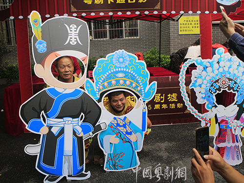 粤剧墟互动活动则包括粤剧脸谱绘制、粤剧化妆,粤剧戏服拍照、粤剧卡通合影、粤剧产品展销、粤剧电影展播等多种形式,在“兰桂腾芳”铜塑的四周设置了多个摊位,让现场观众能够近距离地体验粤剧文化的魅力。市民们可以穿上粤剧的戏服摆设照片留念,也可以尝试化上戏妆,小朋友们可以在此学画粤剧脸谱。