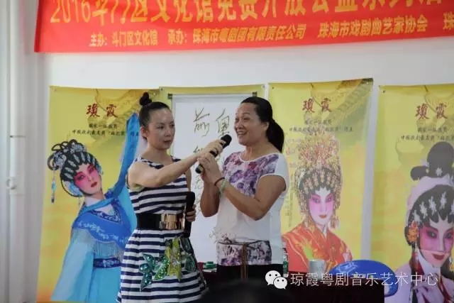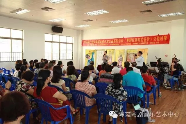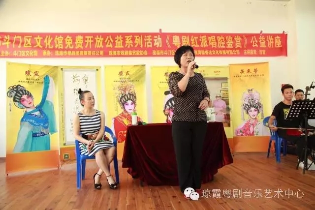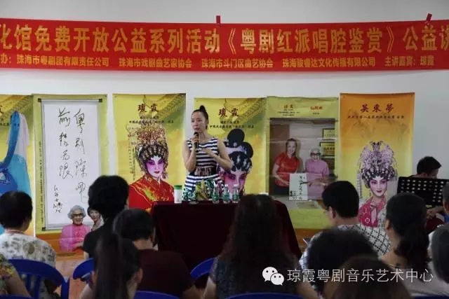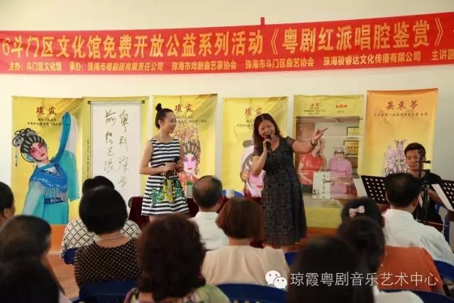 此次讲座以红腔鉴赏为主题,就如何鉴赏红线女艺术唱腔,如何在演唱中通过气、声、字、情四方面去演绎红腔名曲作出深入理论剖析与示范对照。琼霞老师表示,斗门是中国曲艺之乡,很多人喜欢唱粤曲,唱粤曲的队伍不断壮大,群众的广泛性,参与度热火朝天。在群众现阶段广泛性、积极参与性的基础上,提高群众对粤剧粤曲的欣赏水平和演唱表演水平,是我们共同的愿望与责任,希望我的讲座能提升斗门曲艺爱好者的粤剧粤曲水平。