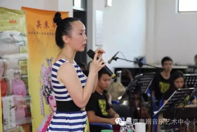讲座现场,琼霞老师理论结合示范传授红腔唱功气、声、字、情方面的技巧。