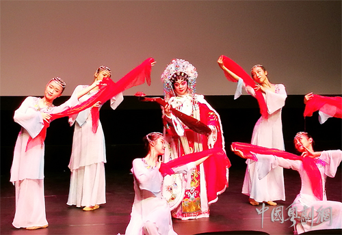 6月20日下午,美国演艺推出人访华团与广州粤剧院进行了艺术交流。广州粤剧团应邀在广州大剧院多功能厅为访华团嘉宾演出了折子戏专场,青年文武生李伟骢演出了《困谷》,青年花旦肖婉婷演出了《昭君出塞》,青年花旦莫燕云、余碧玲等演出了《巾帼英风》。