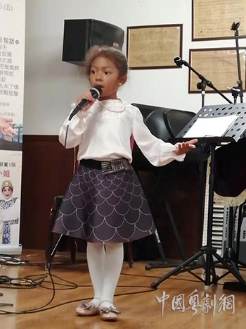 8月1日的演出从晚上8点开始,刘惠鸣、学生及学生家长们早早到场做准备。候场时,我们发现了一位外籍小女孩,她的妈妈正在帮她化妆。原来这位年仅六岁的小演员是混血儿,粤语非常流利。工作人员突然来通知出场次序有变,她与搭档马上要出场了,外籍小女孩立马说:“不行,我还没准备好呢。”说罢,同场的师姐就让他们上台了。两位刚刚还在大厅嬉闹的小朋友,到台上变得非常认真,一开嗓就赢得了台下的阵阵掌声,有板有眼地展示她们的“唱功”及“做手”,天真可爱又有模有样,演出当然大受欢迎。
