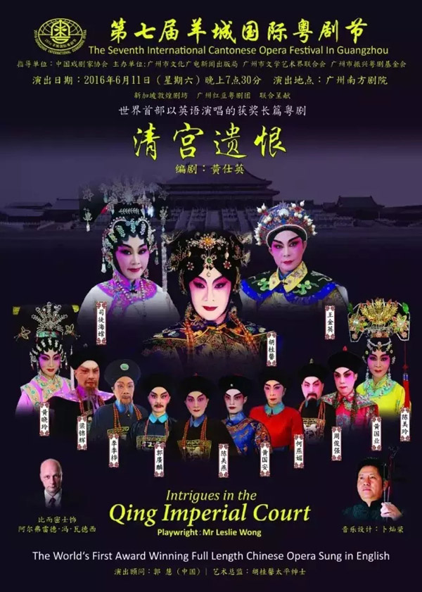 6月5日晚,广州粤剧团结束了香港三天四场的演出;6月8日晚,广州红豆粤剧团完成第七届羊城国际粤剧节大型原创剧目《红的归来》的合成彩排工作。两团演职人员便马不解鞍地投入到了新的工作中,只为配合好粤剧节“全球华人粤剧私伙局惠民大联展”的排练及演出。 时值端午佳节,广州粤剧院两团演职员仍坚守岗位,一日三班,加班加点,分别在广州粤剧院大院的4个排练场同时投入排练,以戏会友。 下午排练 新加坡社团《青蛇》 新加坡社团《青蛇》 本次粤剧节规模盛大,来自美国、加拿大、新加坡、澳大利亚、新西兰、英国、法国、泰国、马来西亚、越南、印尼、丹麦、荷兰、比利时、香港、台湾及两广等20个国家及地区的135个社团,加入到了“全球华人粤剧私伙局惠民大联展”。为配合大联展的顺利进行,广州粤剧院调动了全体演职人员,抽调出乐队、演员、舞美等众多演职员积极配合,每日不间断排练或演出,最多的时候一日三班全排满,保证了世界各地的粤剧社团在粤剧节期间的排练和演出。 其中最为引人注目的莫过于6月11日晚19:15分在南方剧院演出的英语粤剧《清宫遗恨》,该剧来自新加坡敦煌剧坊,以全英语演出粤剧,即整台演出用英语念白及演唱粤剧曲牌。在排练现场,一位外国友人的身影格外抢镜,他用流利的英文、粤剧的唱腔演绎着角色,摆起粤剧身段来亦毫不含糊。 《清宫遗恨》海报 外国粤剧演员比而密士 晚上排练 新加坡英语粤剧 《清宫遗恨》
