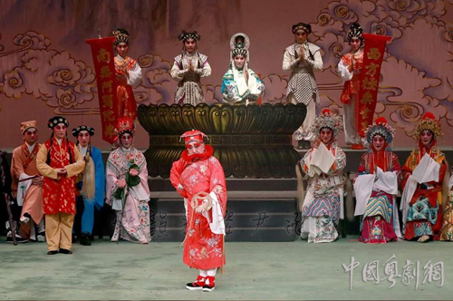 另一亮点是剧中“碧天贺寿”的三首唱腔牌子:“九转”“梁洲序”、及“三春锦”。除此,曹宝洒金钱和观音徇众要求做出八种变身,最后由传说中的钱仙刘海向台上、台下洒金钱,更掀起全场高潮。