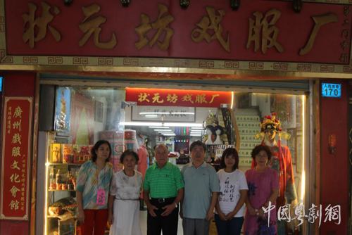 状元坊戏服有限公司主管何凤婷、策划邓毅富等人陪同老市长一行参观了公司一至四楼的门市、车间、设计室、仓储等机构和场地,并向来宾介绍了公司生产经营情况。状元坊戏服有限公司现有职工15人,主要生产经营以粤剧为主的戏曲舞台服装等用品,兼营岭南地区龙舟赛、庙会巡游等广府文化民间活动的相关服装道具物品,近年根据市场需求,积极开发文化创业产品,诸如民间婚庆、生日聚会所需的旗袍、唐装以及包含岭南地方文化元素的礼服、戏曲服装艺术摄影,以及与岭南传统文化相关的旅游纪念品等。年营业额约80—90万元,视生产及经营情况,每年的投入与产出基本持平或略有盈余。戏服厂自建立之日起就座落在广州市人民南路状元坊一带,为两广、港澳乃至世界各地戏曲表演团体以及珠江三角洲民间社团所熟悉,珠江三角洲一带逢民间节庆,世界各地的粤剧社团和粤剧艺术爱好者,每有需要都能轻车熟路找到状元坊戏服厂以购所需。有两广、港澳或海外粤剧团体到广州演出,临时漏带演出物品,第一时间能想起状元坊戏服公司以求江湖救急。状元坊戏服公司已然成为广州市的一张文化名片,公司总策划董惠兰女士被列为省级“非遗”文化项目传承人。近些年来,国内传统经营模式深受网购、电商等新型产业冲击,状元坊戏服公司也未能幸免,生产经营举步维艰,但压垮企业的最后一根稻草,是厂址租金。厂址原租金至2016年6月为每月1.8万元,但就在同年7月,租金猛升为每月3.8万元,致使公司运营成本大幅飙升,至今已欠租30多万元,致使司无法维持正常运营。