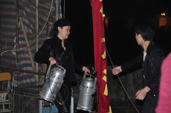 表演结束后,演员们都十分兴奋,清姐大声说:“我们今年的春班成功结束啦!最后大家辛苦点,一起帮忙拆台,一起去吃宵夜,一起去庆祝吧!”演员们齐声响应。安哥在卸妆后,马上帮忙拆台、收绳。他绑绳动作的熟练和快速吸引了大家的眼球,每绑好一捆绳,大家都发出声声赞叹。清姐这时开玩笑说:“你们要看清楚啦,要做文武生首先要学会绑绳!”在清姐的指挥与演职员工的配合下,不到二十分钟,舞台就已经拆卸完毕,齐齐出发去吃宵夜。宵夜时,清姐与大家齐齐举杯,同庆这次春班长征完满结束!回程时,清姐说:“终于结束了,其实春班连续的演出是非常辛苦的,再加上天气的寒冷。幸好我们团的团风是淳朴的,团员们都很齐心。我们心中都有一份坚持,是团结让我们完成这个艰巨的任务。”