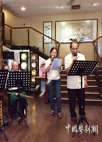出席此次活动的有:郭英伟、我自强、何萍、萧晓青、陈锦荣、黄少梅、谭佩仪、孔庆贤、沈瑞和、苏小玲、蔡汉标、吴国平、郭权等领导嘉宾和专家。现场由近水楼台曲苑的乐师们演奏助兴,会员们踊跃献唱,气氛热烈。