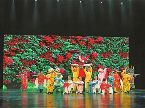 南门小学学生们登上国家大剧院舞台表演《荔枝颂》。 珠海市粤剧团供图。