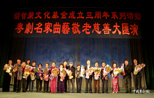 为庆祝小榄甲戌菊花大会200周年,由胡智荣文化基金出资赞助并与广东省戏剧家协会联合主办的胡智荣文化基金成立三周年系列活动之“粤剧名家曲艺敬老慈善大汇演”,于2014年12月6日晚在广东中山市小榄体育馆举行。全国政协常委、中国文联副主席覃志刚,广州市原市长、广州市振兴粤剧基金会会长黎子流,中山市委常委、宣传部部长唐颖出席了活动。白雪仙、林小群、白超鸿、黄少梅、谭佩仪、郑培英等海内外名伶应邀出席了活动。主办方胡智荣文化基金向“创益菊城”行动公益项目和香山粤剧团《南国菩堤》演出项目捐款人民币30万元,白雪仙还现场代表任白慈善基金慷慨捐赠人民币20万元用于敬老活动。现场星光熠熠,精彩纷呈。