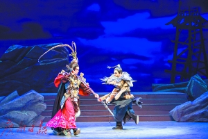 广州粤剧人积极追求新形式、新题材,图为取材于网络游戏的粤剧《决战天策府》。