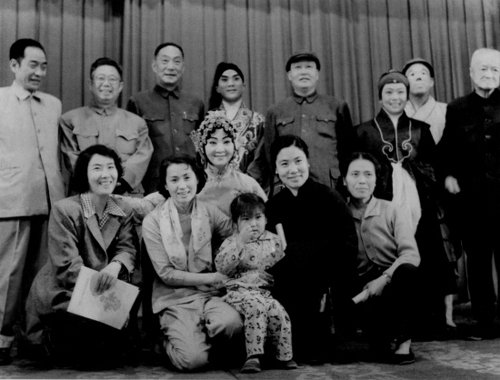 1960年戏曲表演艺术研究班演出留影,前排左起:袁雪芬、红线女、陈伯华、常香玉,后排左起:马师曾、刘成基、俞振飞、荀慧生、徐凌云