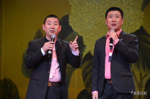 刘昭、刘迪表演相声《抢车位》。