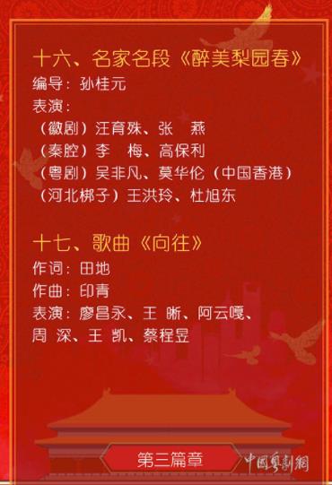 联欢会上,吴非凡亮相于联欢会第三篇章的名家名段《醉美梨园春》节目,她与来自中国香港的著名男高音歌唱家莫华伦联袂演唱了经典粤剧唱段《花好月圆》。吴非凡靓丽的扮相,温润婉转、清脆甜美的嗓音,自然流畅、声情并茂的表演,与莫华伦的默契搭档,将该经典唱段完美的展示给现场观众。两位艺术家精彩的表演赢得台下阵阵热烈的掌声。
