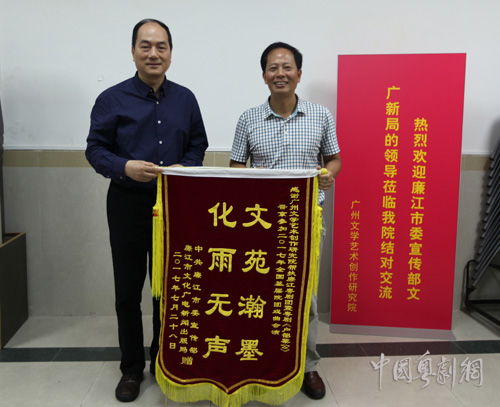 8月17日,廉江市委常委、宣传部林育春部长率廉江市宣传部领导、廉江市文广新局、廉江粤剧团领导一行到广州文学艺术创作研究院,开展结对交流活动。广州文学艺术创作研究院副院长陆键东、副院长梁郁南与各部室主要负责同志参加了座谈。