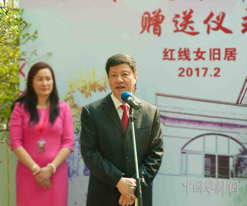 在赠送仪式上,陈建华代表市人大常委会及全体市人大代表向红线女艺术中心和家属表示衷心感谢。他深切回忆了与红线女老师的交往点滴,赞叹她对粤剧艺术的执着追求;同时希望继续办好、管好红线女艺术中心及红线女旧居,办好“红船”、粤剧艺术博物馆,建设好粤剧院新址,培养好粤剧人才队伍,做好粤剧艺术创作,培育好市场、做好宣传,使粤剧艺术不断发扬光大。