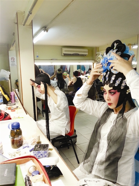 梁素梅和黄俊成在后台化妆