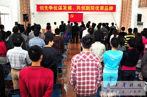 会议上,广东粤剧院党总支书记、副院长陈列东及各党支部代表分别对如何落实文化强省建设、推进“创先争优”活动的开展进行了发言,并表示一定要在这个活动的推动下共创剧院优质品牌。我院团总支宣读了省文化厅“创先争优、服务亚运当先锋”倡议书,号召全院青年朋友携起手来,用扎实的行动支持办好亚运会。紧接着,《国际歌》奏响,洪扬等18位新党员在党旗下庄严宣誓:“为共产主义奋斗终身”。