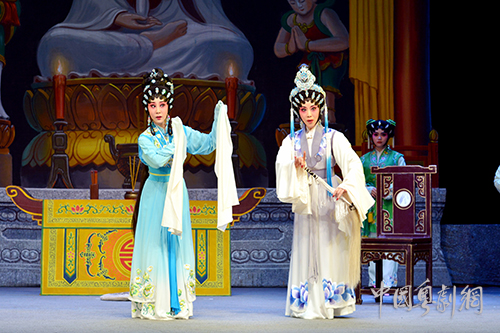 该剧讲述文武状元茹凤声与名妓花艳红私定终身。凤声庶母四姐和妹妹明月不满此事,明月伪冒凤声笔迹,回书拒绝艳红。艳红误信凤声无情,意冷心灰,自杀未遂带发遁迹空门。而凤声也因此相思成病。四姐与明月入水月庵求签,无意中得知解签的尼姑了缘便是艳红。两人见艳红其人娇容艳丽,又慕其文采非凡,遂打消不满,更将艳红栖身之处告知凤声。凤声与艳红重会,道明其中误会,两人成眷属。与此同时,明月也与文武探花夏子奇相恋,通过两把琵琶扇信物,才得知艳红原来乃夏子奇失散的妹妹,兄妹得以团圆。