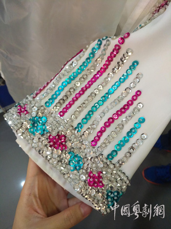 杜咪亲手缝制的珠片