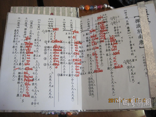 粤剧粤曲就像一座隐藏各种珍奇异宝的洞穴,吸引着来访者不断寻找,不断有新的惊喜和收获。学习了粤曲伴奏,杜咪觉得还不够过瘾。在曲友的熏陶、师父的鼓励和自身表演欲的驱动下,他开始由乐手转型为唱家。唱粤曲首先要解决记曲词的问题,这居然没有难倒看不懂汉字的杜咪。他发明了一个办法,就是听着录音用葡语把每个汉字在粤曲中的发音记下来,注在曲谱上,看着注音就能把整首曲唱出来了。再根据搭档给他讲解唱词中的故事背景,他也大概能把握演唱时需要表达的各种感情。就这样,杜咪学会了上百首粤曲。