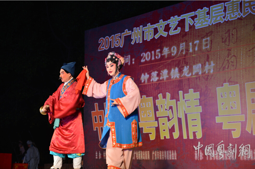 9月17日晚,广州粤剧院·红豆粤剧团来到钟落潭镇龙冈村进行“中国梦粤韵情·粤剧专场”文艺下基层惠民演出,为当地村民带来了《竞芳菲》、《访鼠》、《抢笛》、《打金枝》等多个精品折子戏表演,吸引各年龄层的观众三千余人前来观看,有的更是全家扶老携幼,欢聚一堂。