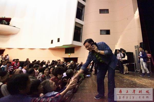 最后一场演出散场时,南宁戏迷迟迟不肯散去,丁凡出台与戏迷握手道别