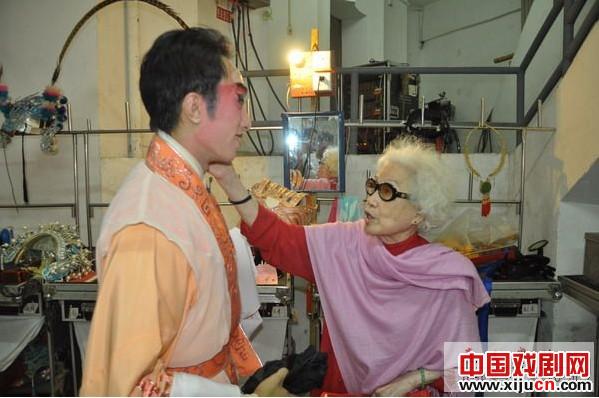 红线女在后台鼓励年轻演员